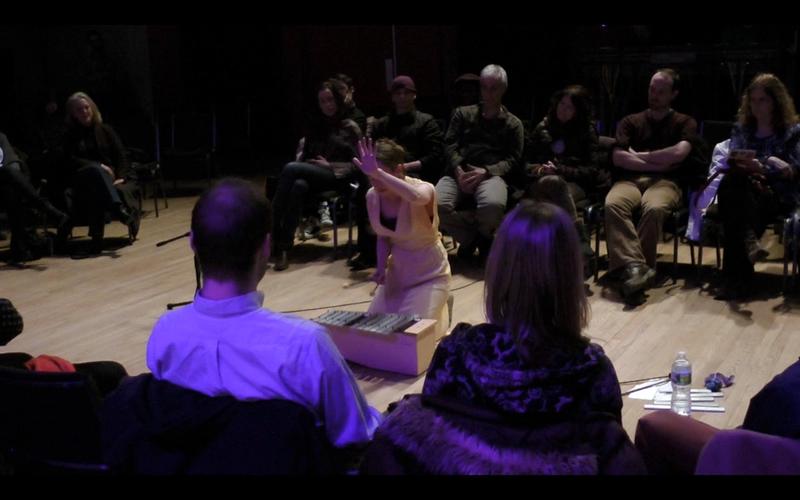Our Defensive Measurements (2013) is a song cycle commissioned by the Jerome Foundation and Roulette as part of the Emerging Composers program. It was first premiered at Roulette on Feb. 22, 2013. Using the full space of the Roulette concert hall, each song in the cycle has been designed for the audience and performers to be in a particular physical arrangement or engaged in a particular task. The piece was performed by Gelsey Bell (voice/metallophone) with Jen Baker (trombone/voice), Paul Pinto (voice/metallophone/jack-of-all-trades), Dave Ruder (clarinet/voice), and Aliza Simons (euphonium/voice).
